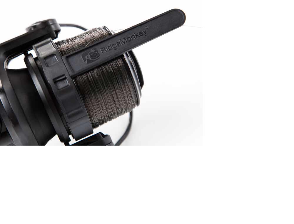 Line Control Arm ist so konstruiert, dass er auf die meisten Big Pit Rollen passt und verhindert, dass die Schnur vom Spulenkopf springt.