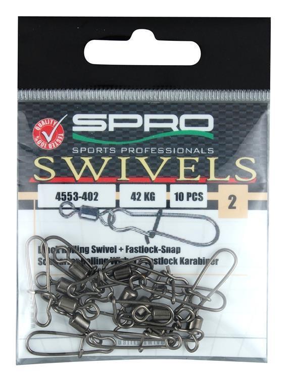 Spro Rolling Wirbel + Fast Lock Snap; Gr. 4; 30 Kg; 10 Stück