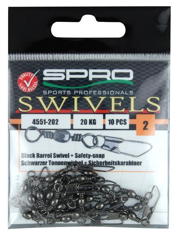 Die Tönnchenwirbel mit Karabiner von Spro gibt´s in verschiedenen Größen mit unterschiedlicher Tragkraft. Hochwertige Wirbel mit unterschiedlicher Tragkraft.