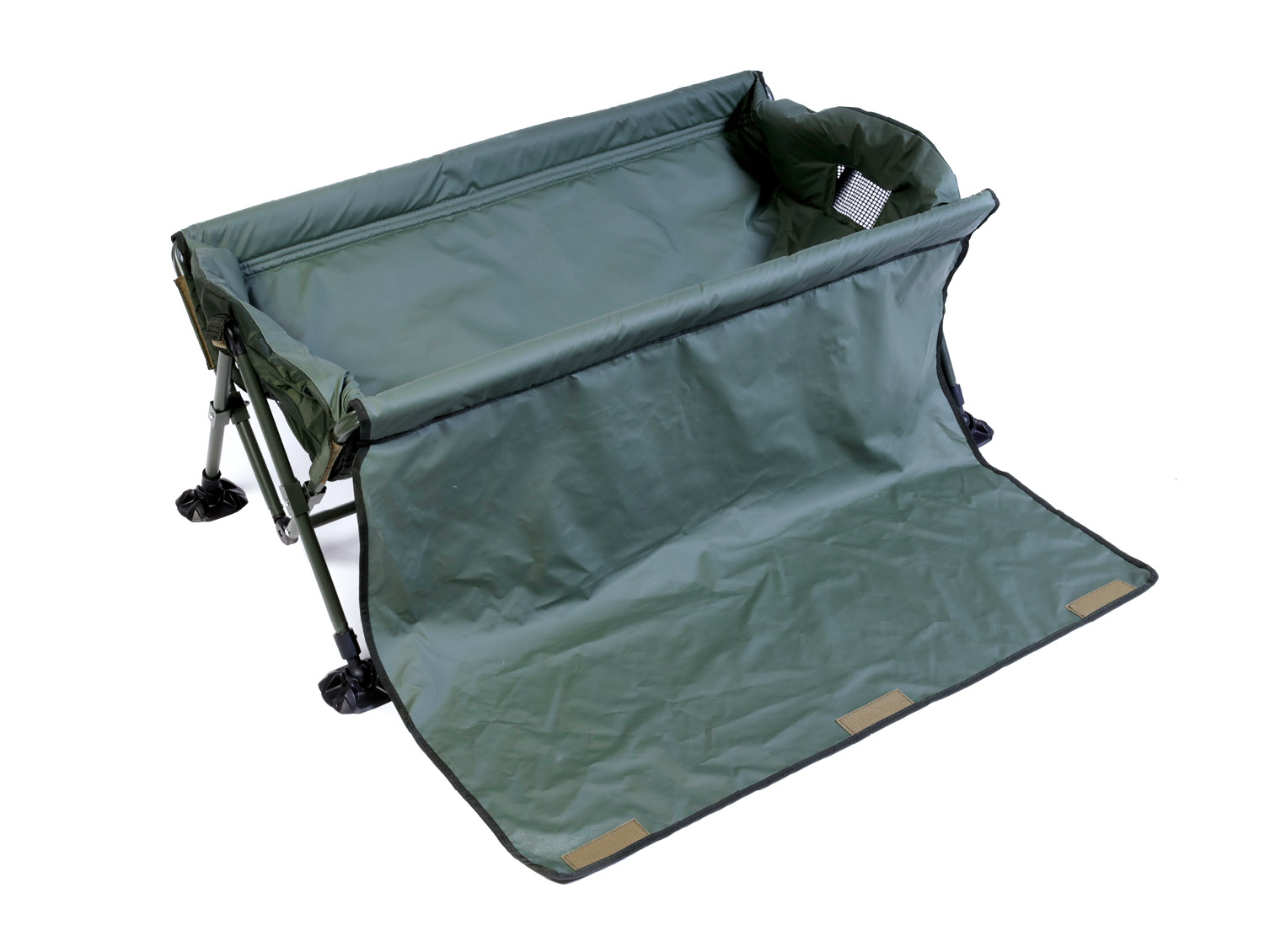 - Flach zusammenfaltbar für leichten Transport. Klettverschlusstragegriffe.