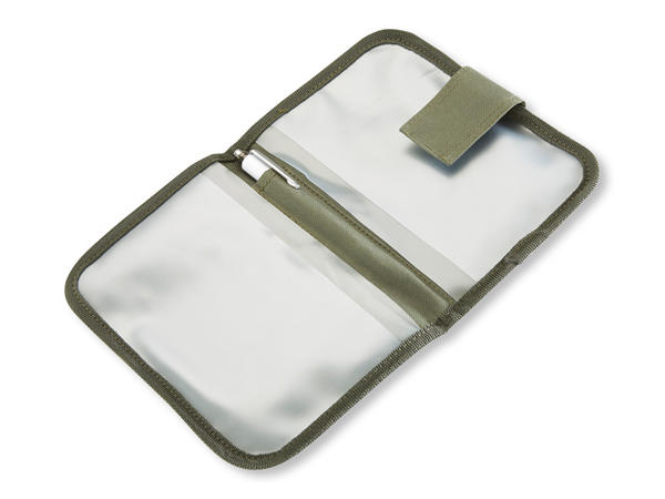 Hochwertiges Angelscheinmäppchen mit 4 transparenten Innenfächern und einem Stifthalter zur sicheren Aufbewahrung für Dokumente, Tageskarten, Fischereischein etc.