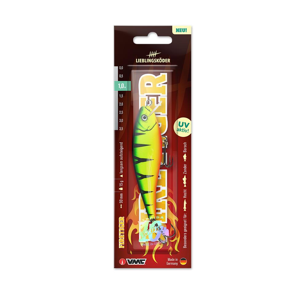 Tauchtiefe Lieblingsköder Firetiger Wobbler 9cm – Flachläufer: