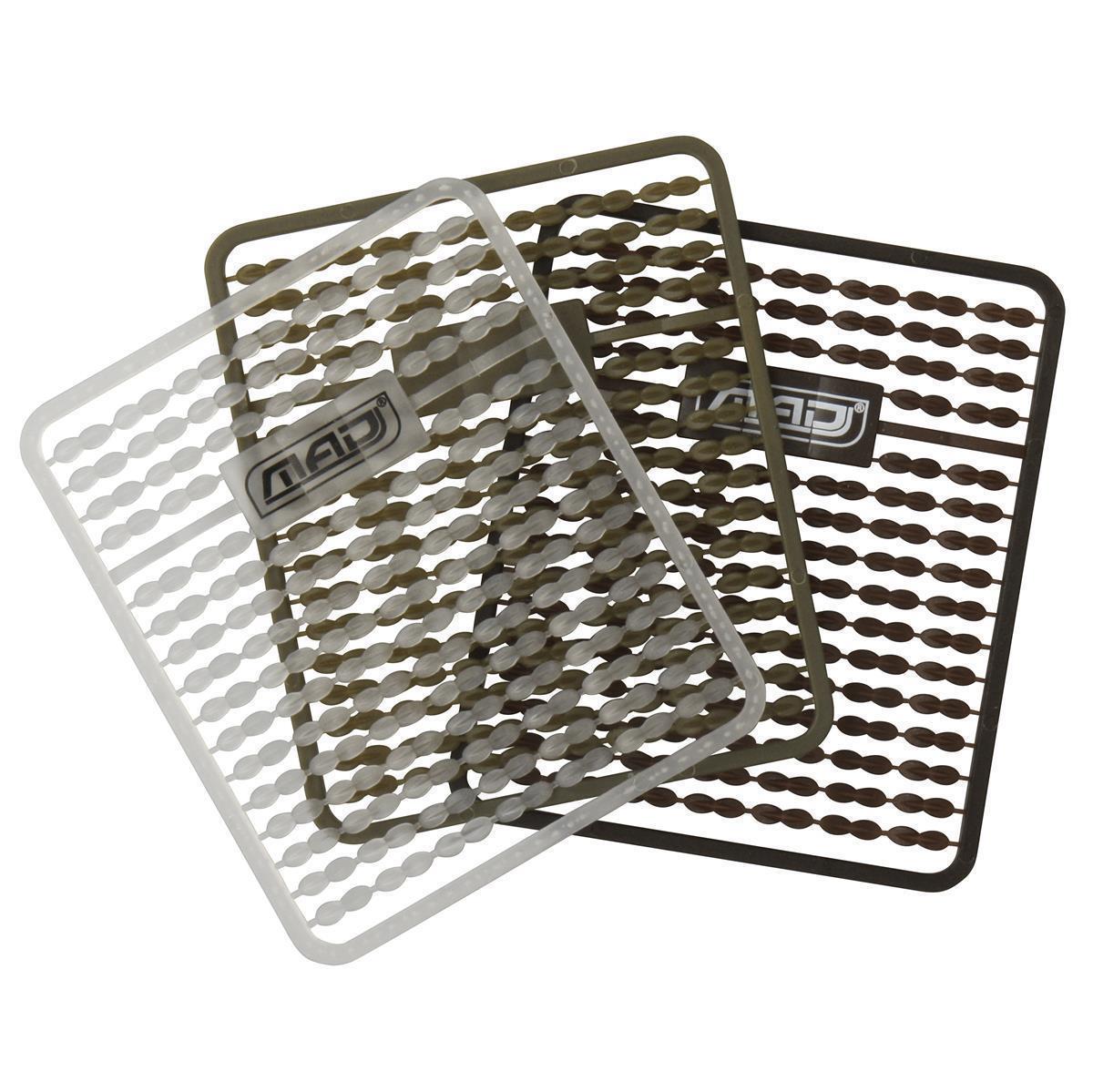 MAD Hairstops sind in drei verschiedenen Farben (klar, braun und grün) erhältlich und werdenauf einfach zu nutzenden Rahmen geliefert. Die Form wurde so gewählt, dass sich die Stops perfekt an die Oberfläche Ihres Köders anpassen. 2 Rahmen pro Packung.
