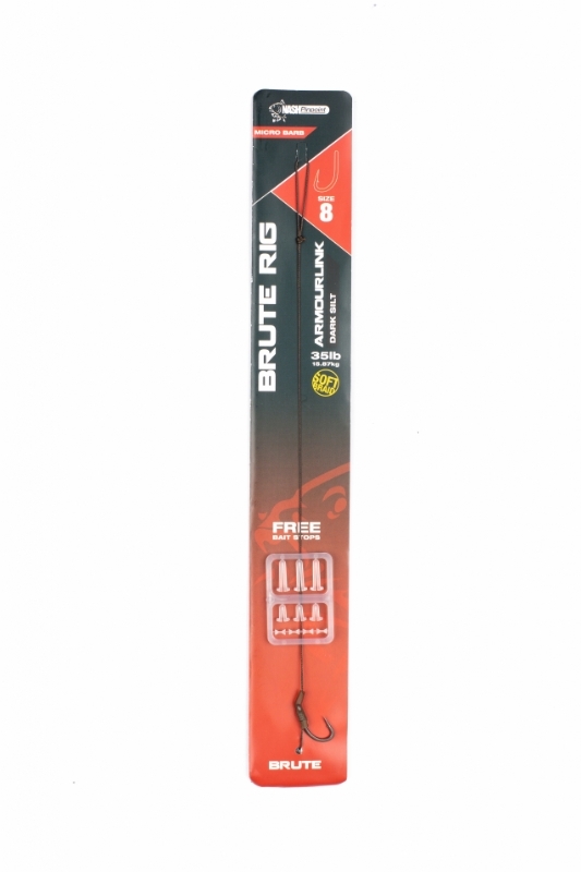 Nash Brute Rig Micro Barb Size 2; 35lb Soft Braid Dark Silt